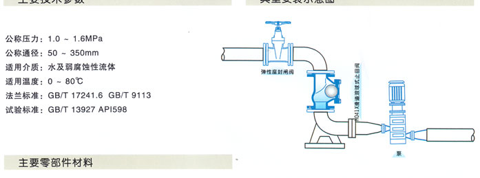 滑道滾球式止回閥,采用橡膠包皮滾球為閥瓣,在介質(zhì)的作用下,可在閥體內(nèi)的整體式滑道上作上下滾動。從而打開或關(guān)閉閥門,密封性能好,消聲式關(guān)閉,不產(chǎn)生水錘。閥體采用全水流通道,流量大,阻力小,水頭損失比旋啟式小50%,水平或垂直安裝均可,可用于冷水、熱水、工業(yè)及生活污水管網(wǎng),更適合潛水排污泵,介質(zhì)溫度為O~80℃。