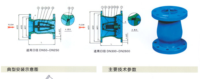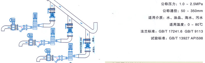 該閥主要用于給排水、消防、暖通系統(tǒng),可安裝于水泵出口處,以防止倒流及水錘對泵的損害。
