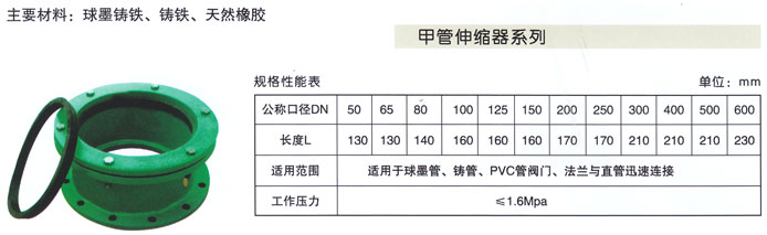 甲管伸縮器也稱伸縮節(jié)、膨脹節(jié)、補(bǔ)償器、伸縮接頭。伸縮器在一定范圍內(nèi)可軸向伸縮,也能在一定的角度內(nèi)克服管道對接不同軸向而產(chǎn)生的偏移,能極大的方便閥門管道的安裝與拆卸,在管道允許伸縮量中可以自由伸縮,一旦越過其大伸縮量就起到限位,確保管道的安全運行。主要為保障管道安全運行,具有以下作用:補(bǔ)償吸收管道軸向、橫向、角向熱變形;吸收設(shè)備振動,減少設(shè)備振動對管道的影響;吸收地震、地陷對管道的變形量。
